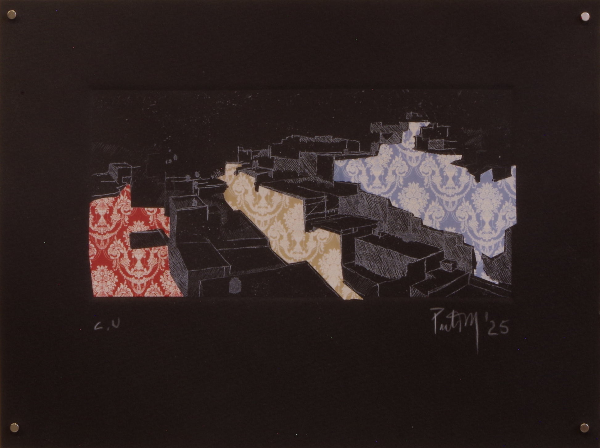Etching and collage on black cotton paper