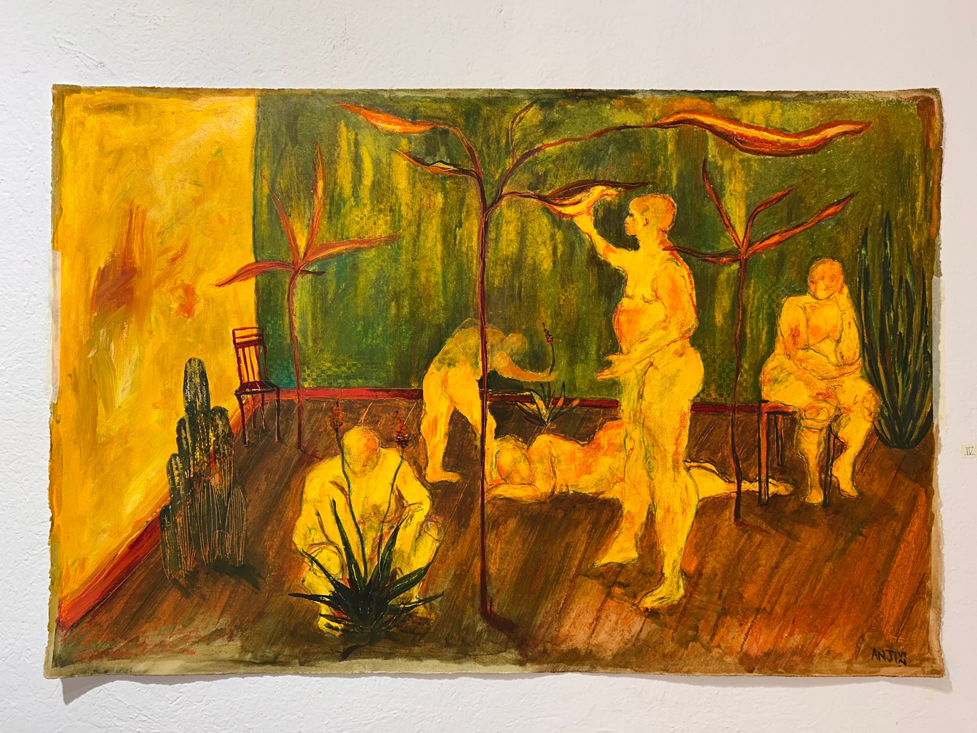Mixed media: Oil pastel, acrylic, and ink on cotton paper, etched details